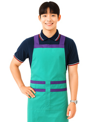 櫃台收銀圍裙/日式風格/多口袋圍裙-4口袋造型-湖綠配紫