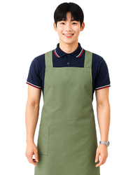 創意家團體服推出的 日式 H 型環保圍裙,採用 MIT 再生環保布料 製作,輕盈耐磨、耐洗不變形,協助企業在制服中落實永續理念。霧面橄欖綠沉穩柔和,呈現質感文青風格,深受咖啡館、書店、花店等品牌 一致好評推薦。