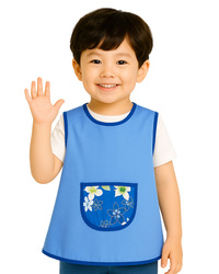 幼兒園圍兜 無袖 訂製款 水藍滾寶藍 花布口袋 <span>BIC-00-38</span>