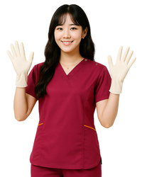 創e家團體服-V領接片斜口袋手術服-肩開釦款-酒紅 袖口