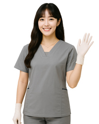 創e家團體服-V領接片斜口袋手術服-灰色 領子