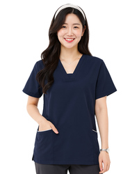 創e家團體服-V領接片斜口袋手術服-丈青 口袋