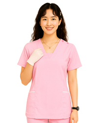 創e家團體服-V領檔片 剪接斜口袋手術服-肩開釦款-粉紅 肩釦