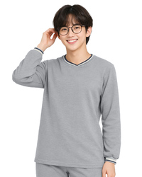 創e家團體服-健檢服-V領-麻灰 領子