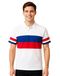 POLO衫短袖訂製|橫條接片|白紅藍|PCANB-P01-00481