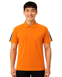 POLO衫短袖訂製|斜袖剪接出芽|橘配丈青白|PCANB-P02-00498