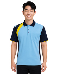 POLO衫訂製中性短袖|協剪接配色款|水藍配丈青黃