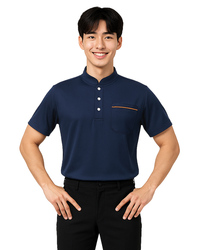POLO訂製|立領短袖 中性|丈青配土黃|<span>PCANB-S41-00484</span>
