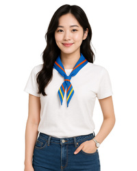 創意家團體服推出的 MIT 童軍領巾,採用高織數耐洗布料製作,藍底搭配橙、黃三色條紋,象徵童軍精神與隊伍識別。布料挺度佳、不易皺,結點穩定好打結,適合升旗、隊呼、露營等高活動量場景。全程台灣生產確保色牢度與版型一致,長期補貨也能維持同批品質。提供團體客製服務,可調整色條、尺寸並加上校名電繡,是學校童軍隊、研習營與各式典禮的耐用首選。