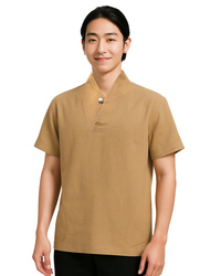 V領開襟中國衫-天絲麻-黃褐<span>SHO-EB01</span>