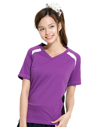透氣排汗TV領短袖斜袖接片款腰身-紫色THTG-BB01-60